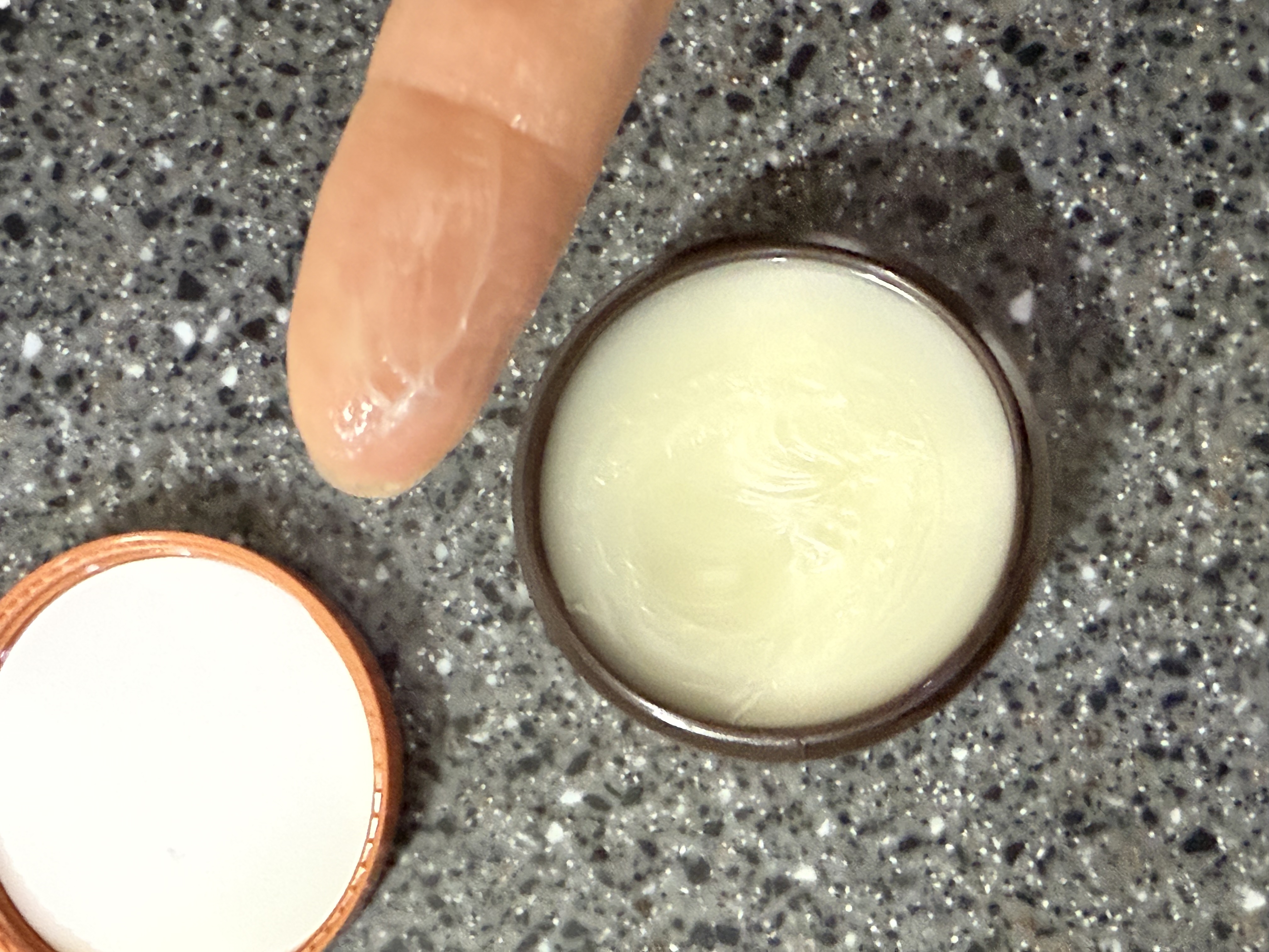 Here's the setup: it's in a little jar. No spatula. No applicator. No we thought about hygiene for two seconds tool. So unless you're carrying your own mini spatula like a tiny lip-mask pharmacist, I am not, you're using your finger. That alone wouldn't be a dealbreaker, but it matters because this product is not a normal balm texture. It's not even a normal thick balm texture. It's... a substance.