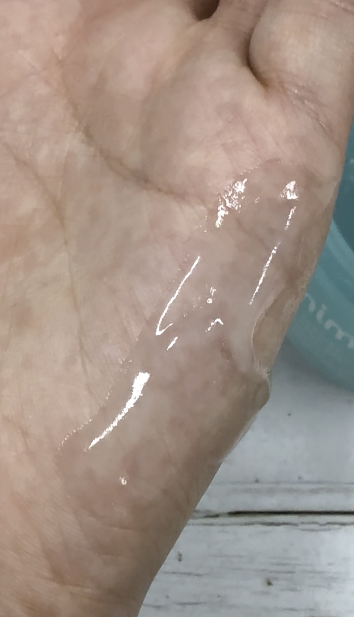The texture was the first nice surprise. It has a soft, cushiony gel cream feel. It is firm enough in the jar that it holds its shape on the spatula for a second, then it spreads out easily and relaxes as soon as it hits my skin. On first look it seems like it might be thick and heavy, but the moment I start applying it, it feels much lighter than it looks.